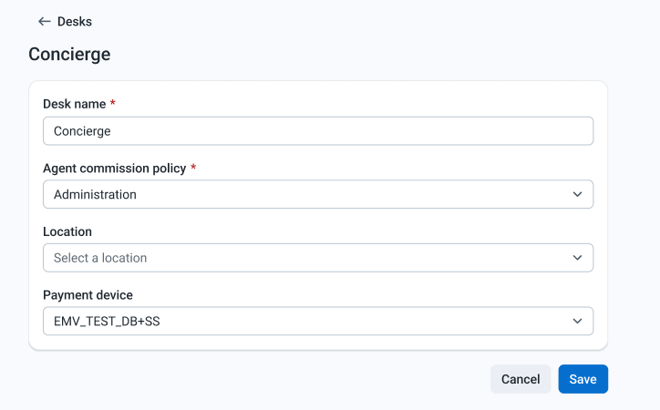 Once a device is registered and assigned to a desk, you can process payments through the paired EMV device from that desk.