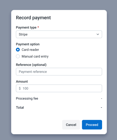 Card readers offered through Desk allow you to implement your own in-person checkout experience for your customers.