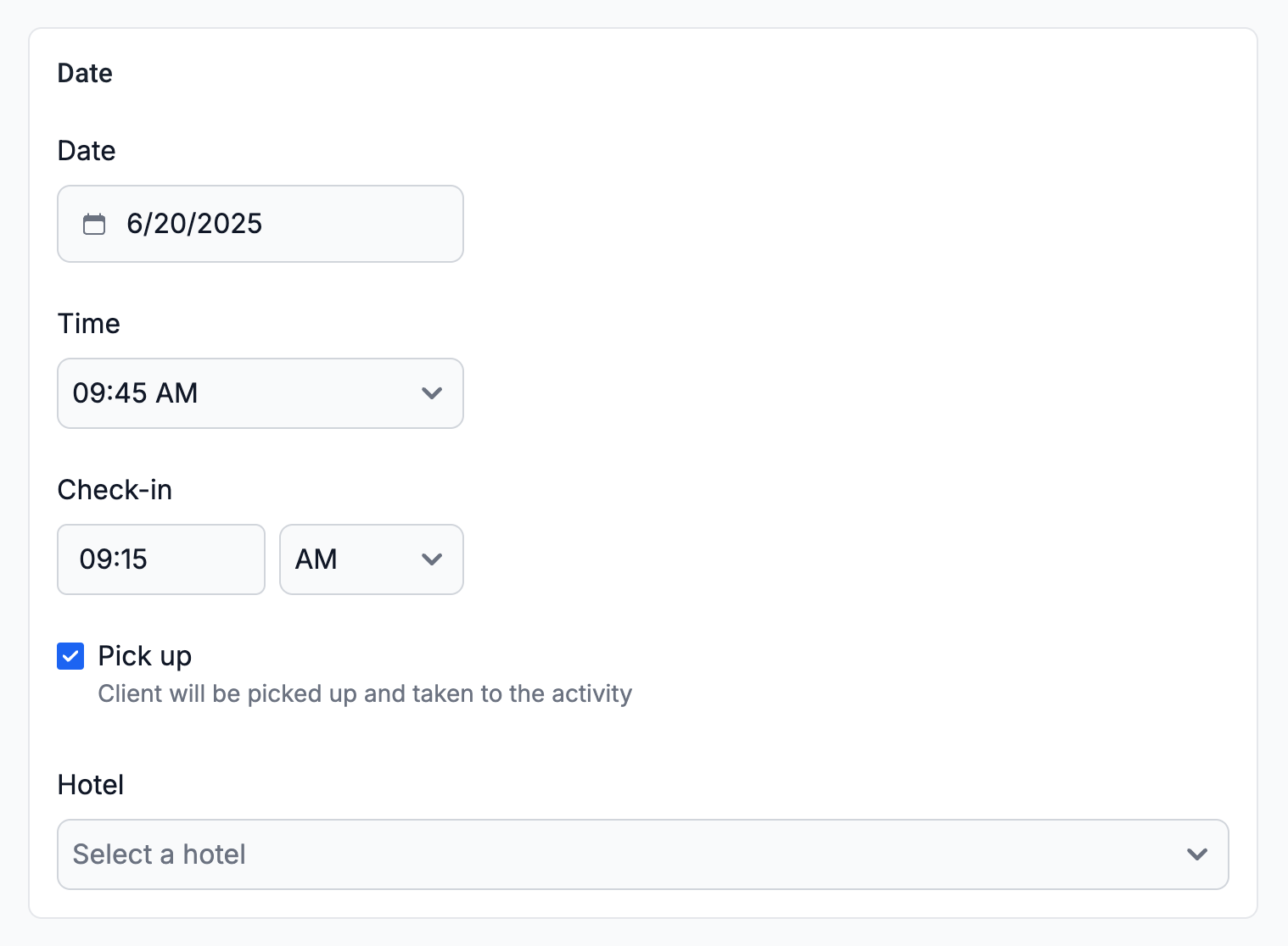 A voucher’s date, time, and check-in time can be edited for all active vouchers. These fields can be found under the Date section on the Edit vouchers page.