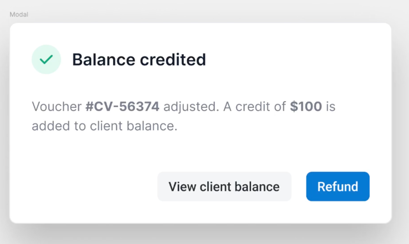 If a refund is due to the customer, Desk credits the client balance. Once the balance has been credited, you may initiate a refund. Here, you may select the refund type and amount.