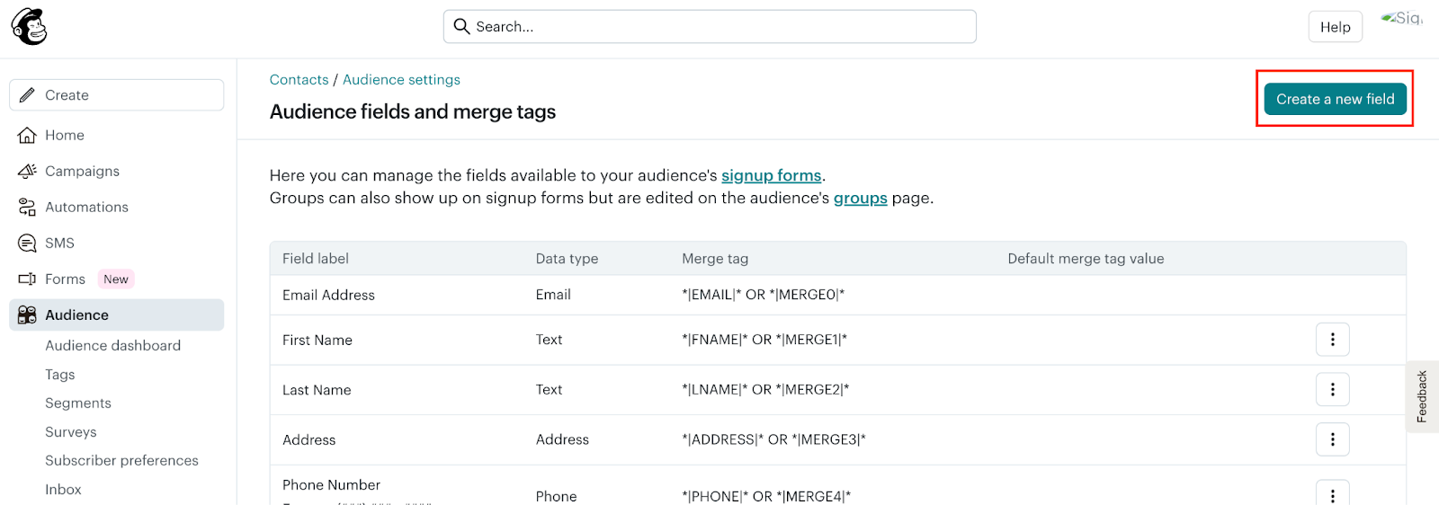 Before Desk data can be sent to Mailchimp, you must set up the corresponding fields in your Mailchimp dashboard.