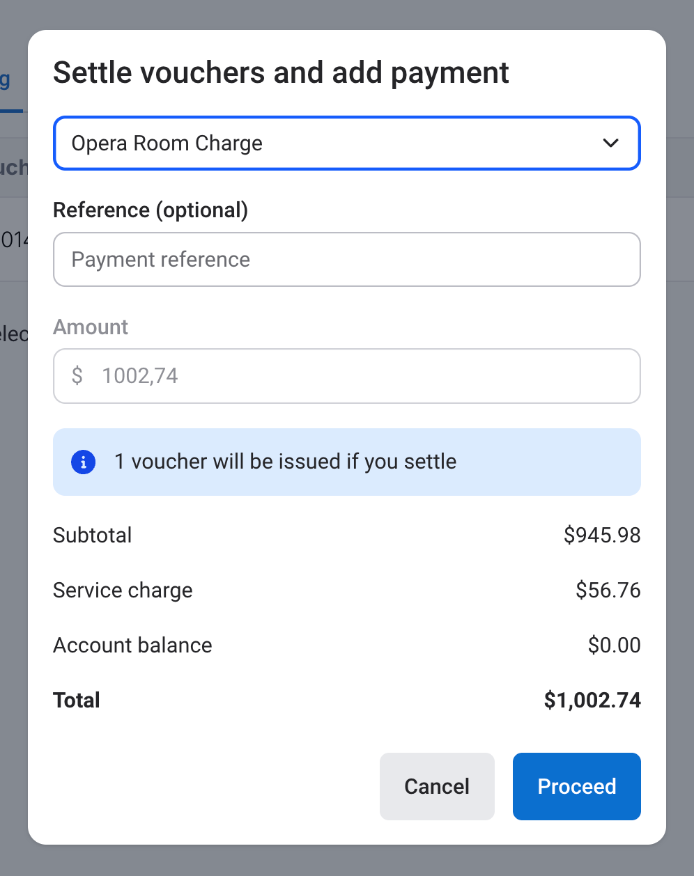 Refunds can also be posted back to the room charge. When cancelling a voucher, and refunding a payment, select Opera Room Charge as the Payment type for the refund.