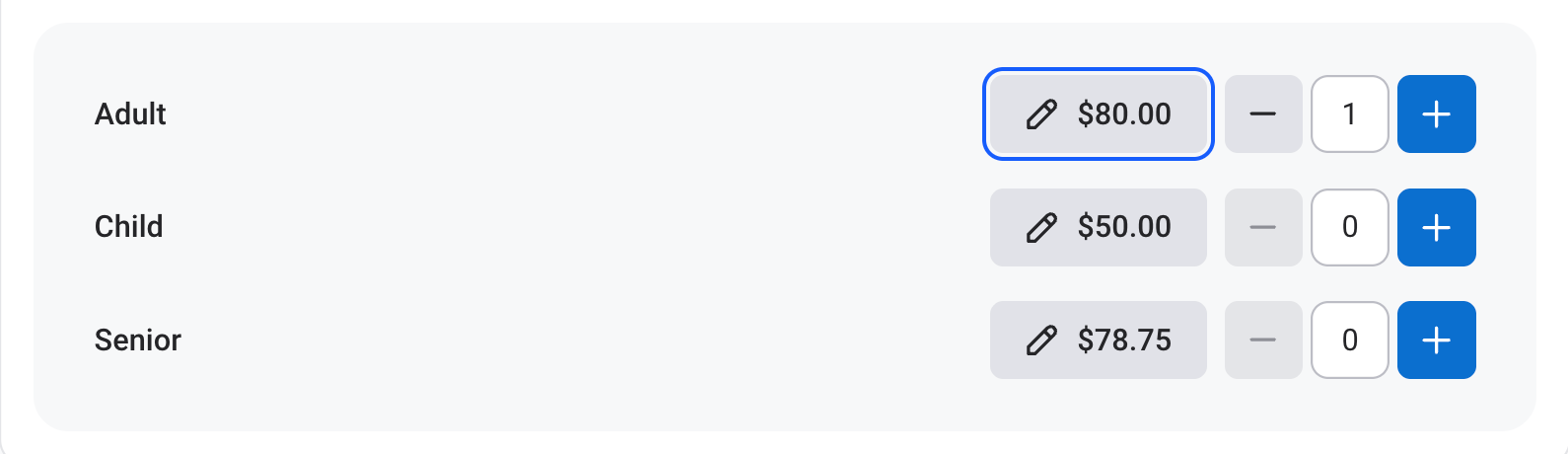 To add the tour discount to a voucher, select the customer type for which you would like to apply the discount: