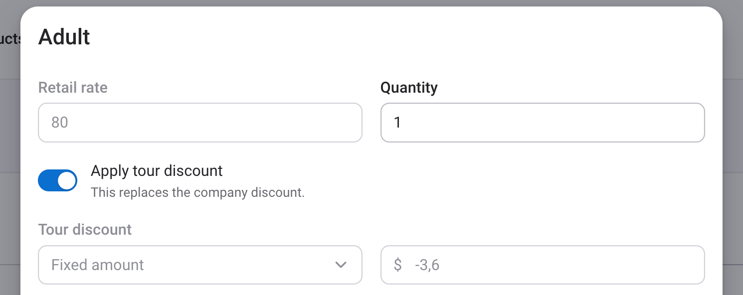 The tour discount is calculated using a retention rate configured at the desk level, unless a vendor-specific retention rate is set. FareHarbor Desk uses the applicable retention rate to calculate the tour discount automatically.